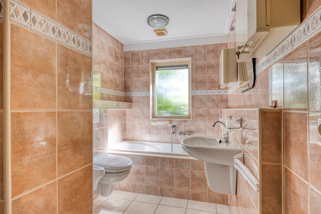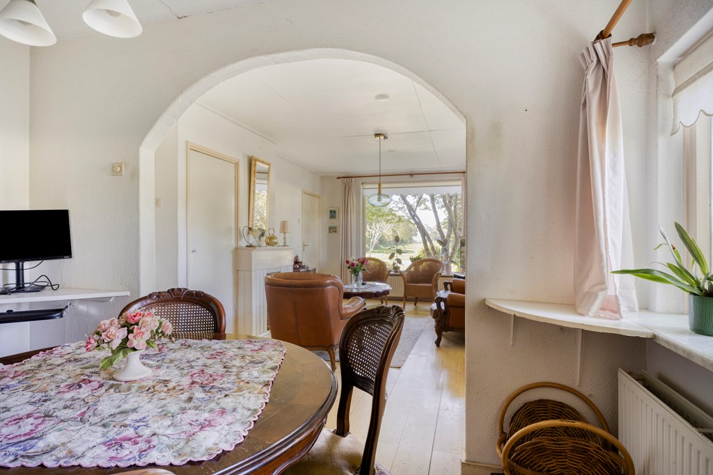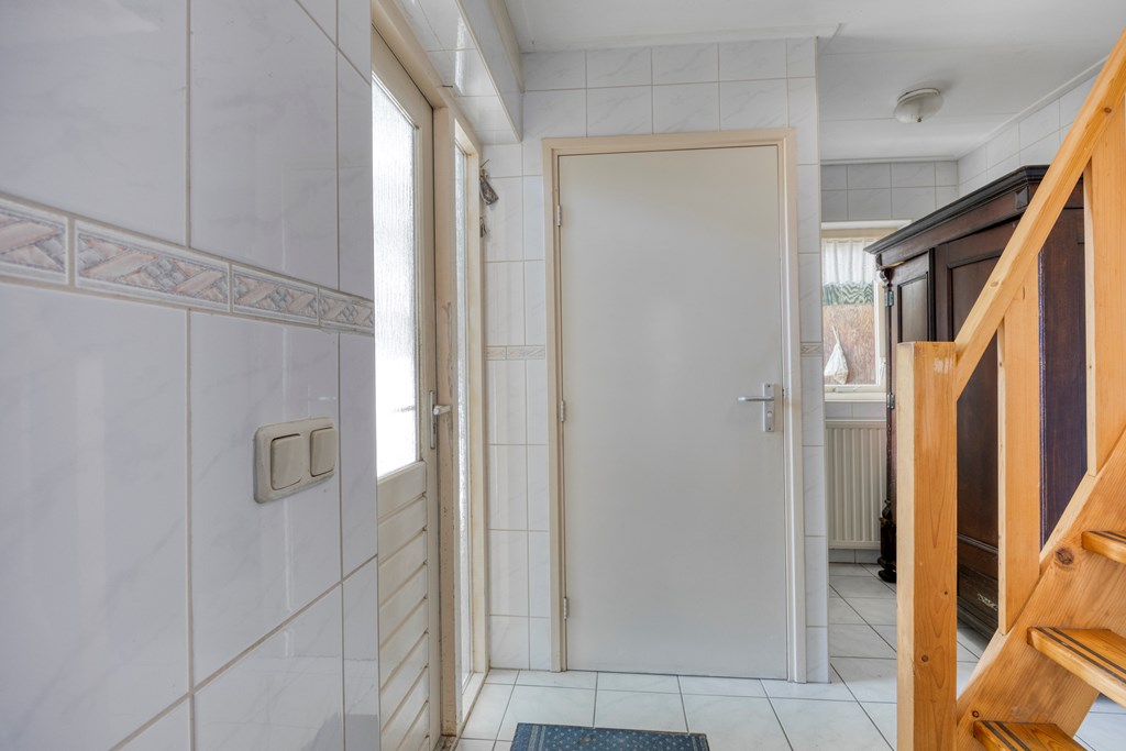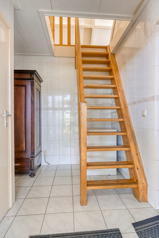 Entree/ hal met trapopgang en meterkast. De woonkamer beschikt over veel lichtinval en een fantastisch uitzicht over de landerijen. De keuken is voorzien van vaste kasten en een keukenblok met o.a. een gaskookplaat en een afzuigkap. De bijkeuken, bereikbaar via de keuken, beschikt over een toilet, tuindeur, trapopgang naar zolderruimte en een toegang naar de slaapkamer voorzien van tuindeuren en een badkamer met ligbad, douchehoek, wastafel en toilet.