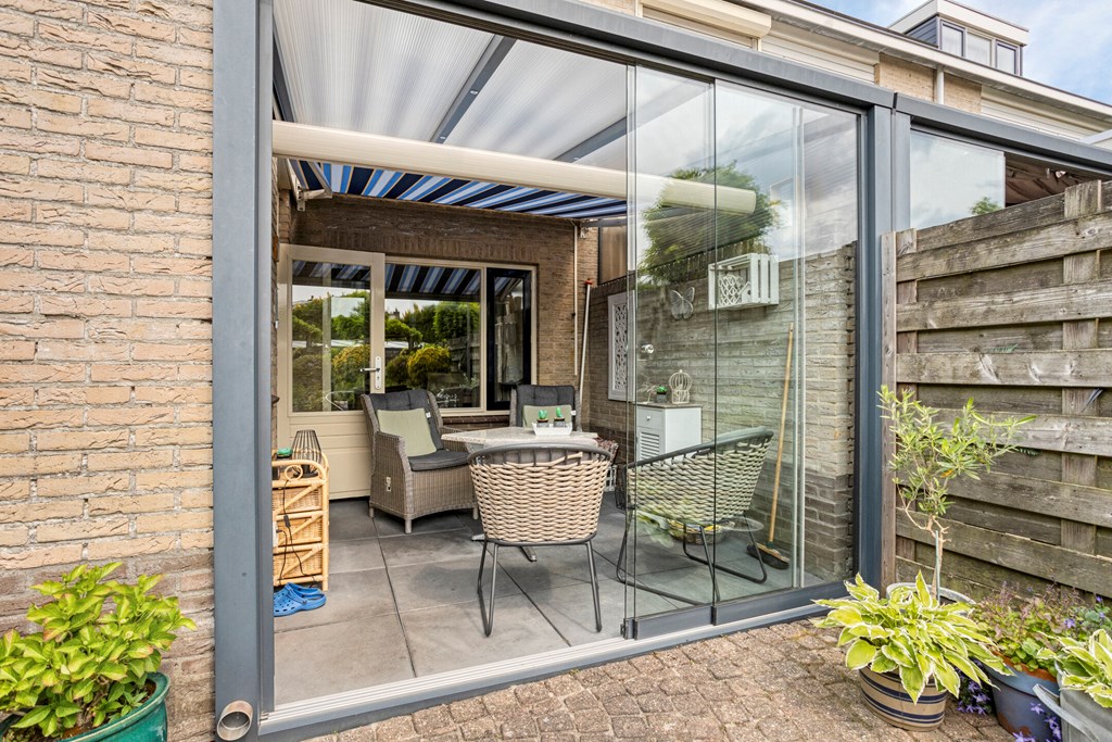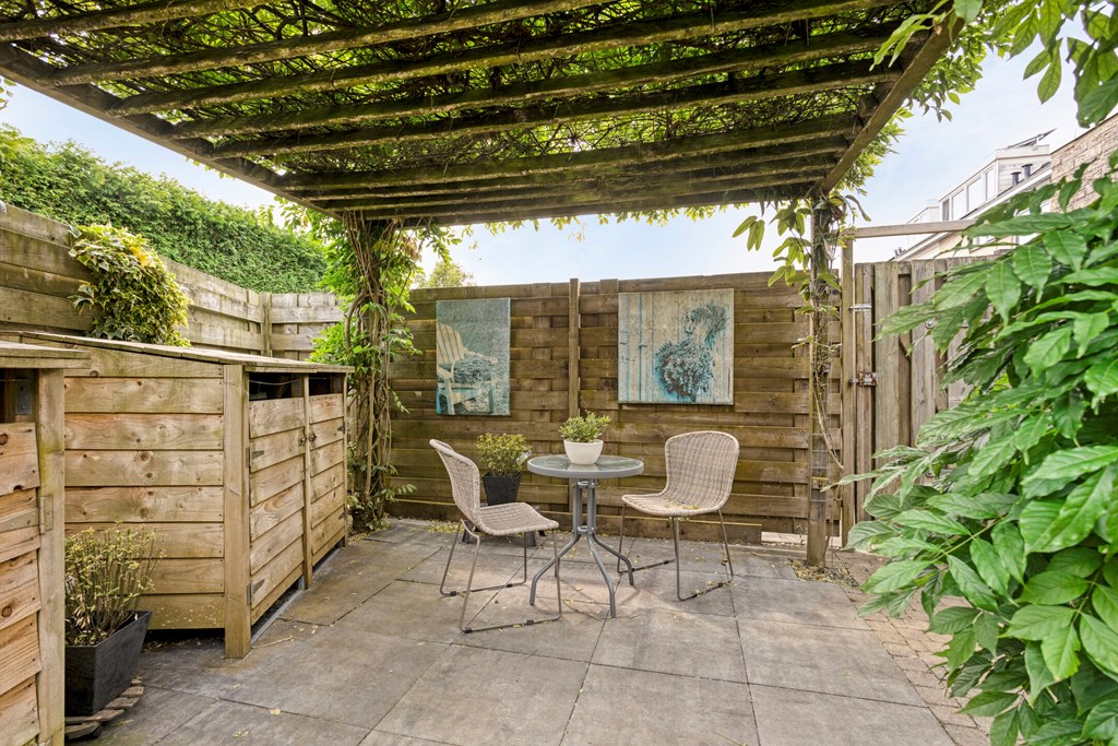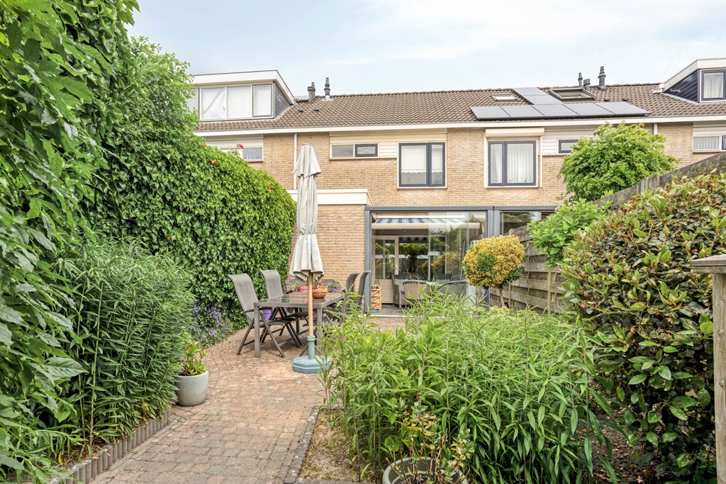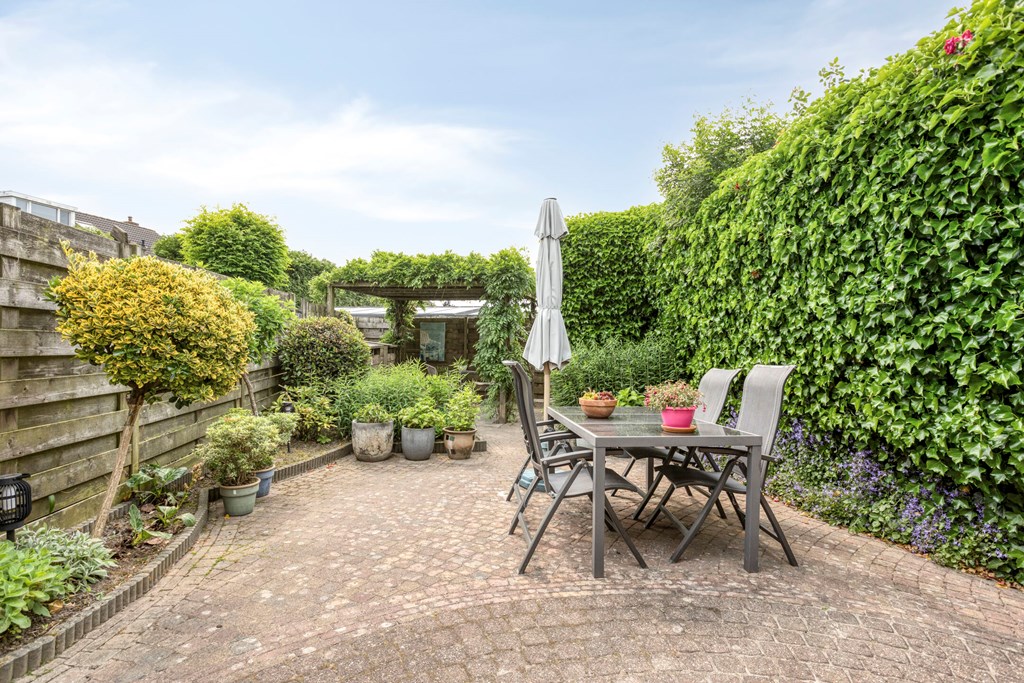 - de woning is voorzien van een groene achtertuin met o.a. berging en een overdekte terras;