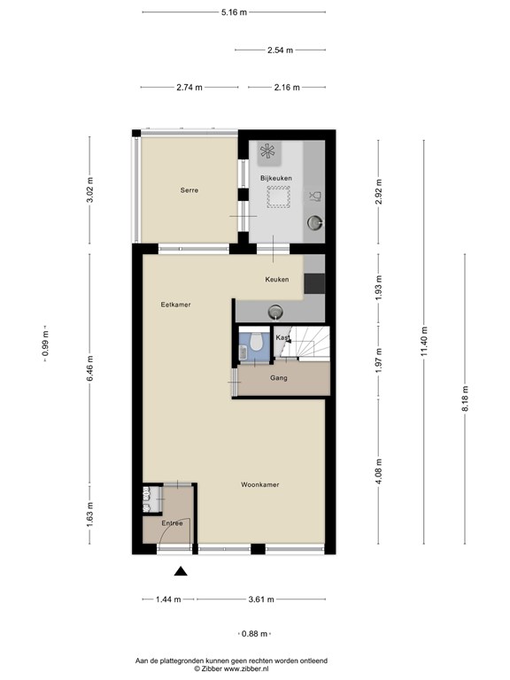 Entree/hal met meterkast. De woonkamer is voorzien van veel lichtinval en een keukenblok met diverse inbouwapparatuur, o.a. een inductie kookplaat, afzuigkap en een oven. Via de bijkeuken komt u in de serre met een toegang naar de achtertuin. Vanuit de woonkamer bereikt u ook een tussenhal voorzien van het toilet en de trapopgang.