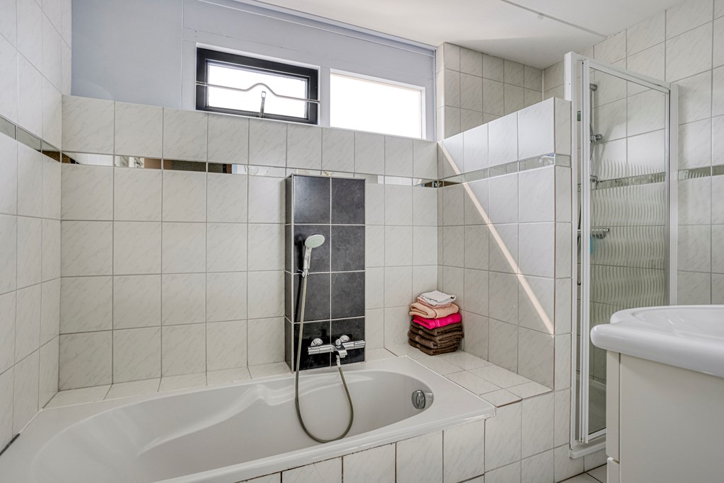 - de woning is voorzien van een badkamer met ligbad en douche;