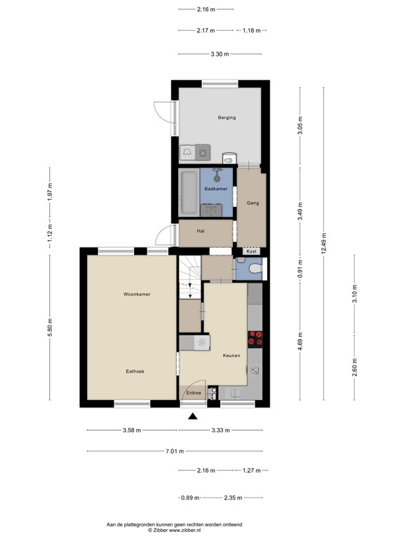 - De tussenwoning beschikt over een badkamer op de begane grond;