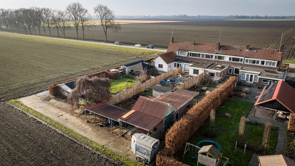 Op een groot perceel landelijk gelegen tussenwoning met schuur en een achterom. De tussenwoning beschikt over een woonkamer, keuken, bijkeuken, 3 slaapkamers en 2 badkamers. De diepe achtertuin is voorzien van diverse terrassen. De tussenwoning is gelegen op een perceel van 816m² en heeft een woonoppervlakte van ca.105m².