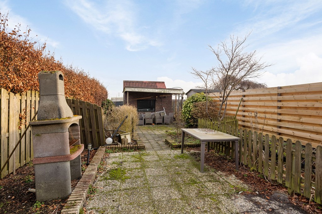 - De tussenwoning beschikt over een garage / berging met overkapping;