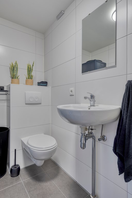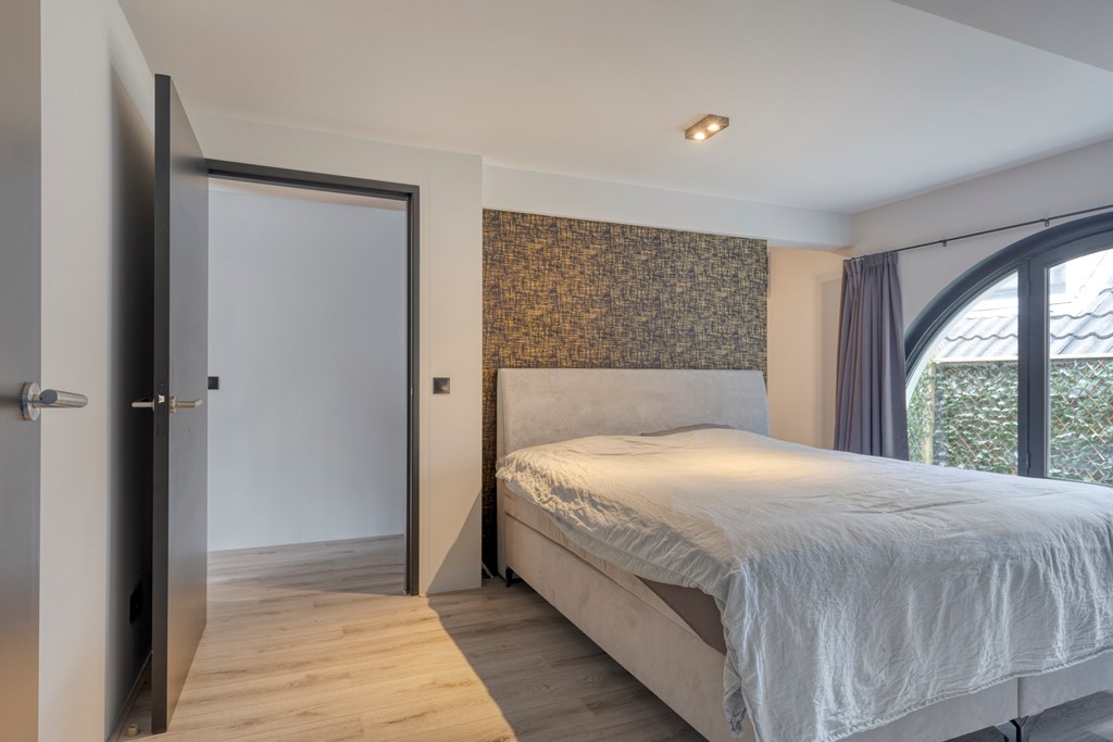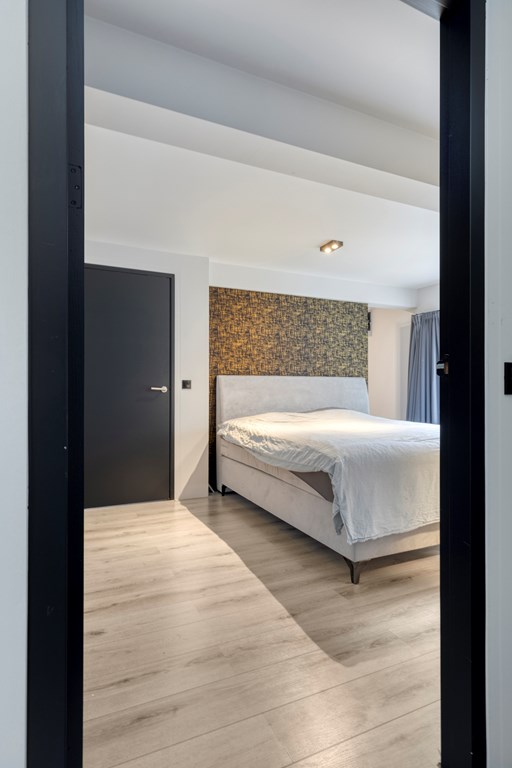 Overloop, slaapkamer met een inloopkast en de moderne badkamer voorzien van een wastafel, toilet en een douche. Een extra overloop, geschikt voor diverse doeleinden, is ook bereikbaar via de slaapkamer.