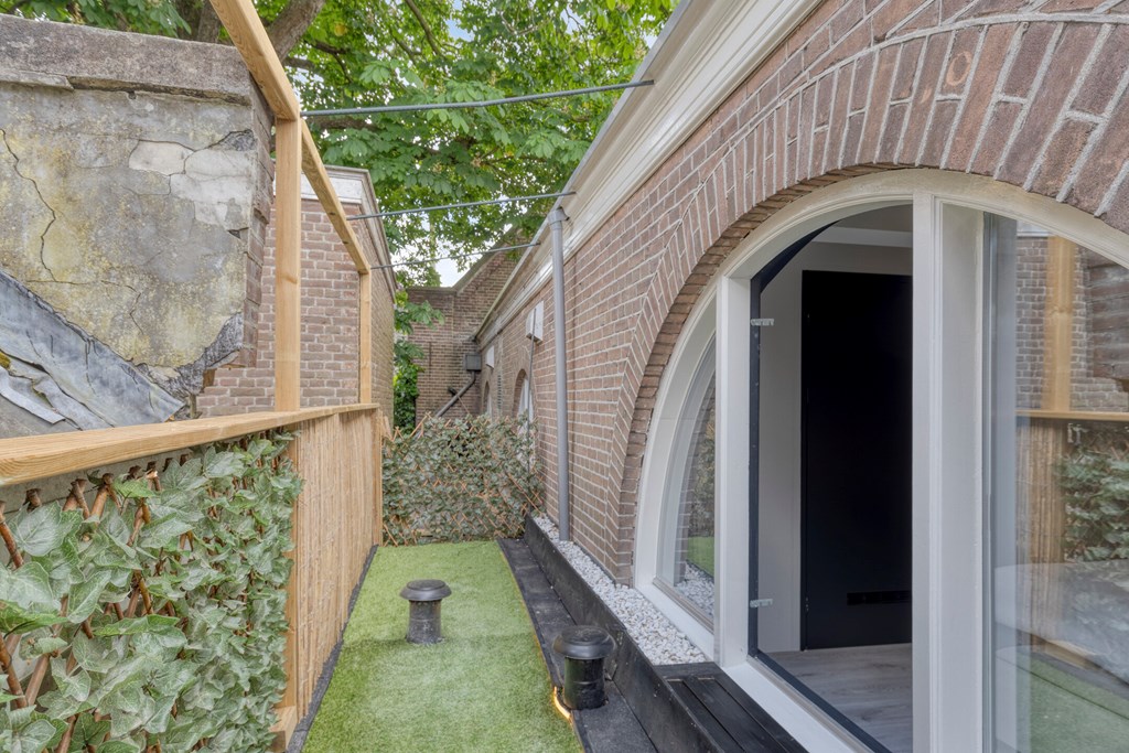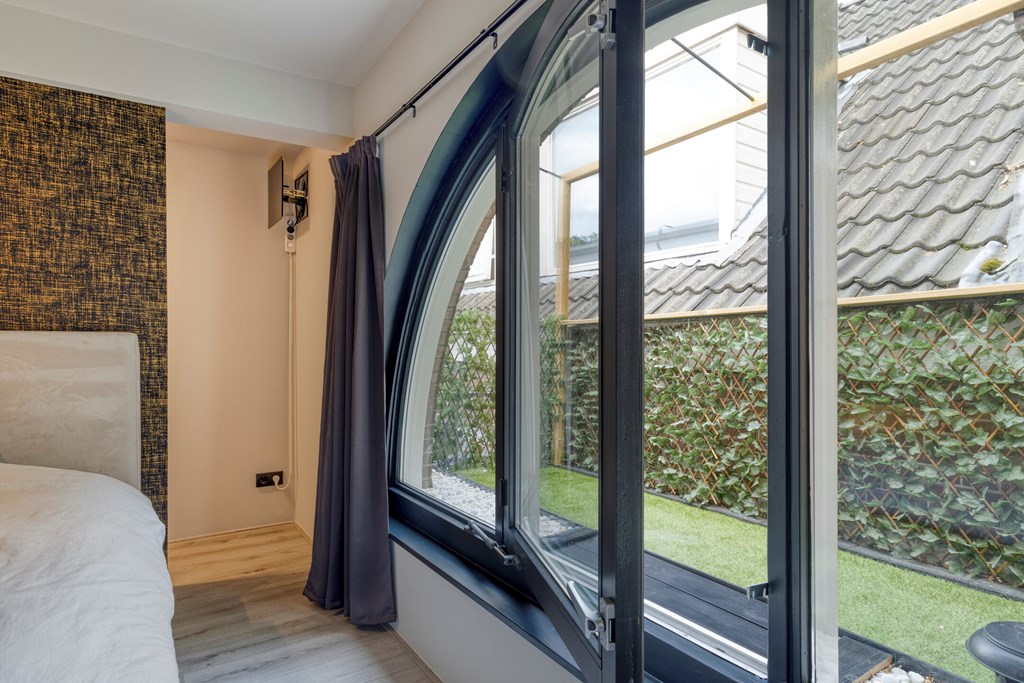 Via de slaapkamer is een klein dakterras bereikbaar. Voor de woning is er plaats voor een bankje. Bij de woning hoort ook een parkeerplaats.