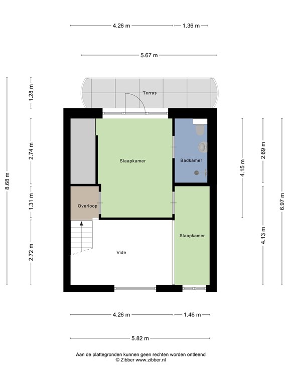 - De woning beschikt over een slaapkamer en een extra overloop met mogelijkheden;