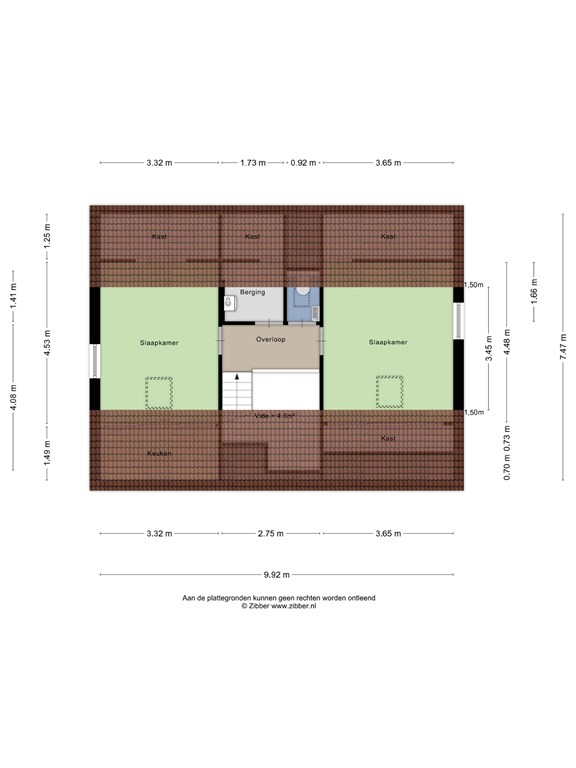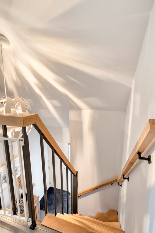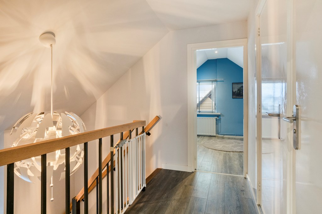 Overloop met vide, berging, toilet en 2 ruime slaapkamers.