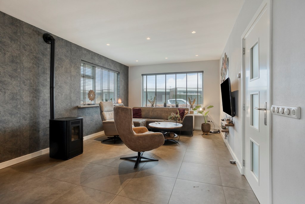 - De semibungalow is voorzien van een lichte woonkamer met keuken en openslaande terrasdeuren;