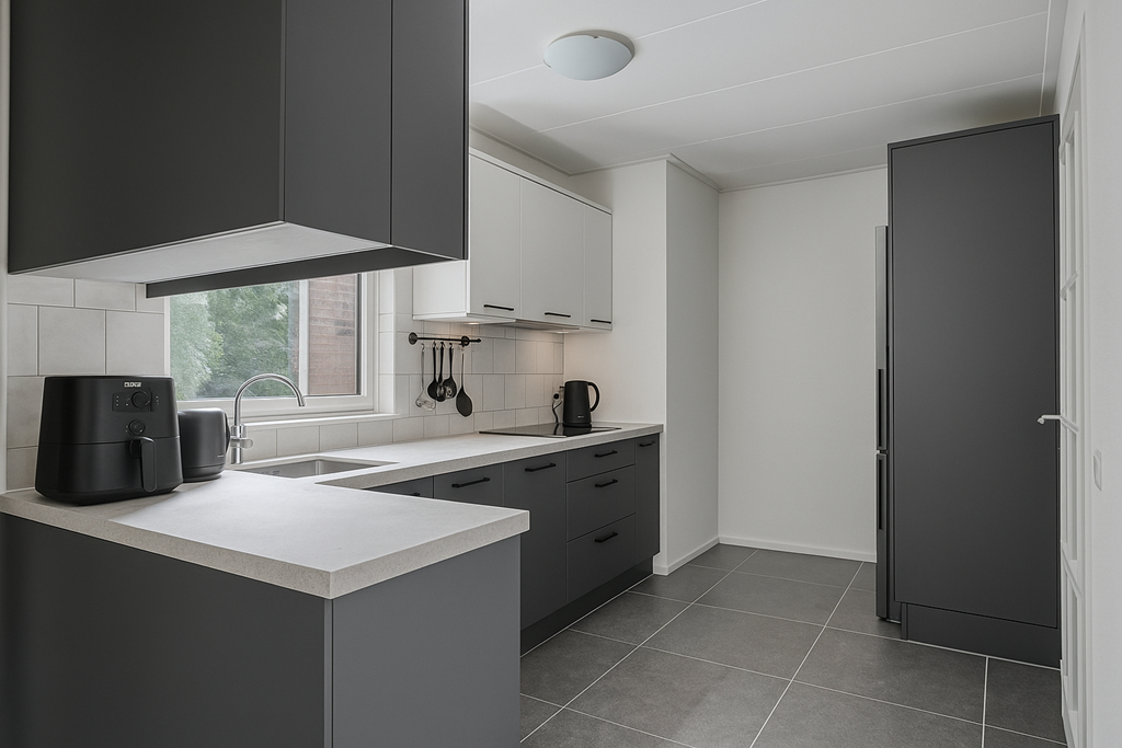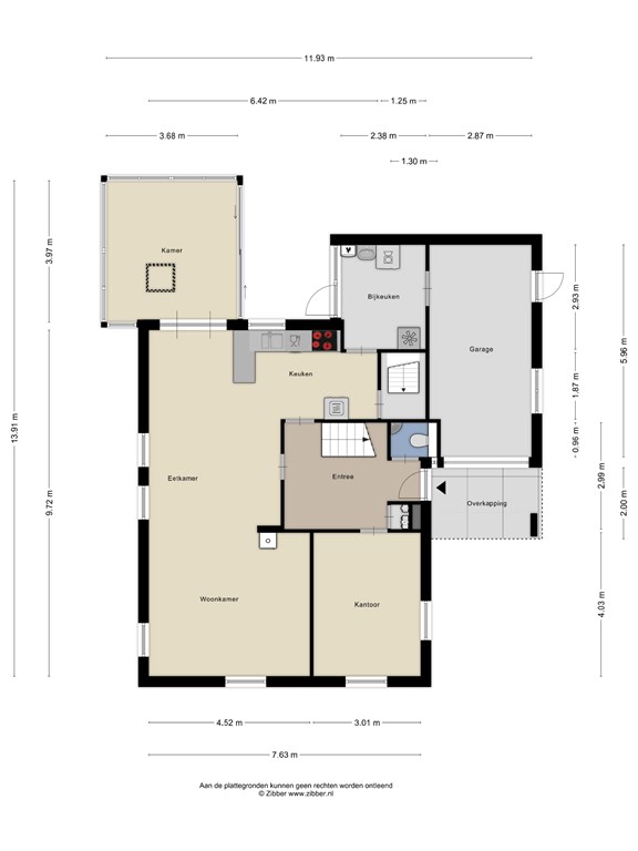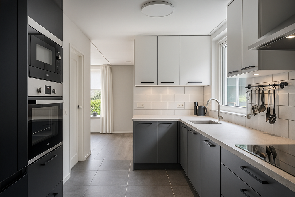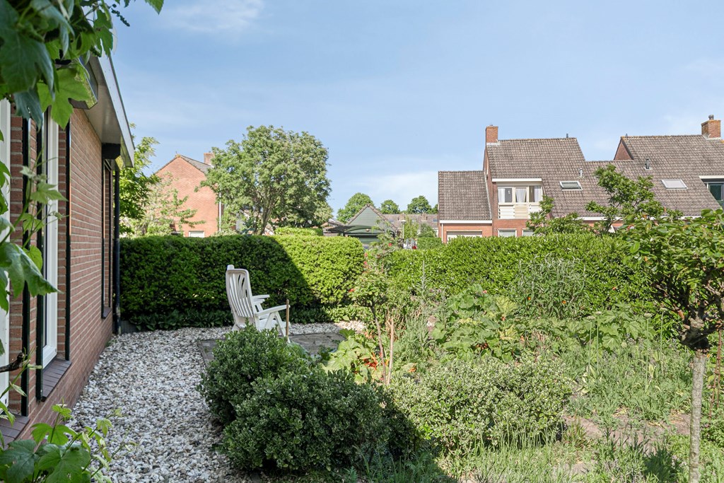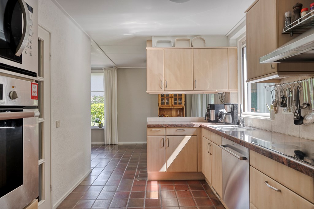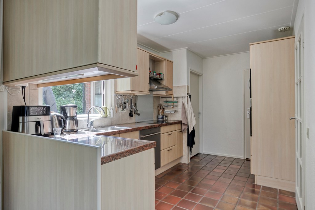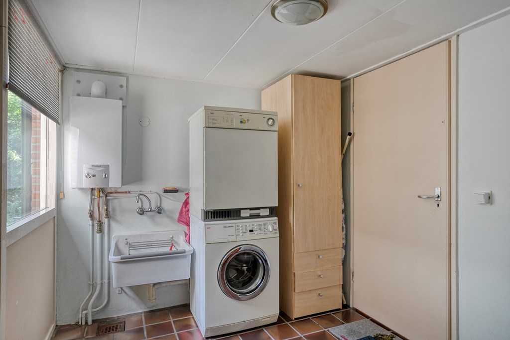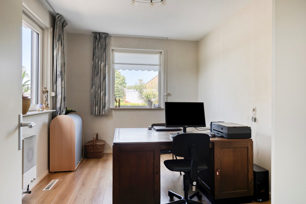 Bij binnenkomst komt u in de ruime hal met meterkast, toilet, trapopgang en een slaapkamer op de begane grond, die momenteel als kantoor wordt gebruikt. De lichte woonkamer met serre nodigt uit tot ontspannen avonden en heeft via een schuifpui direct toegang tot de tuin. De keuken is praktisch en compleet ingericht met diverse inbouwapparatuur, waaronder een inductiekookplaat, oven, magnetron, vaatwasser en close-in boiler. Vanuit de keuken bereikt u de kelder en de bijkeuken. Hier vindt u de koelkast, een extra wasbak, ruimte voor de was-droogopstelling en toegang tot zowel de tuin als de inpandige garage.