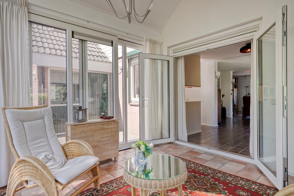 - Ruime, lichte woonkamer met serre en complete keuken;