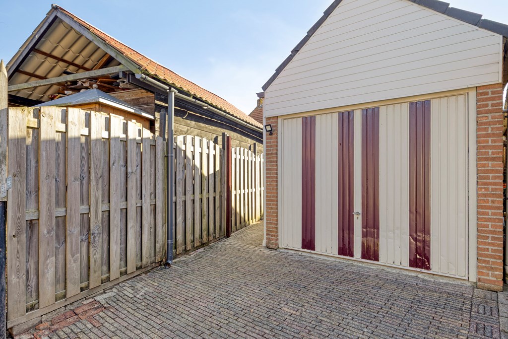 - De woning beschikt over een achtertuin met garage en een achterom;