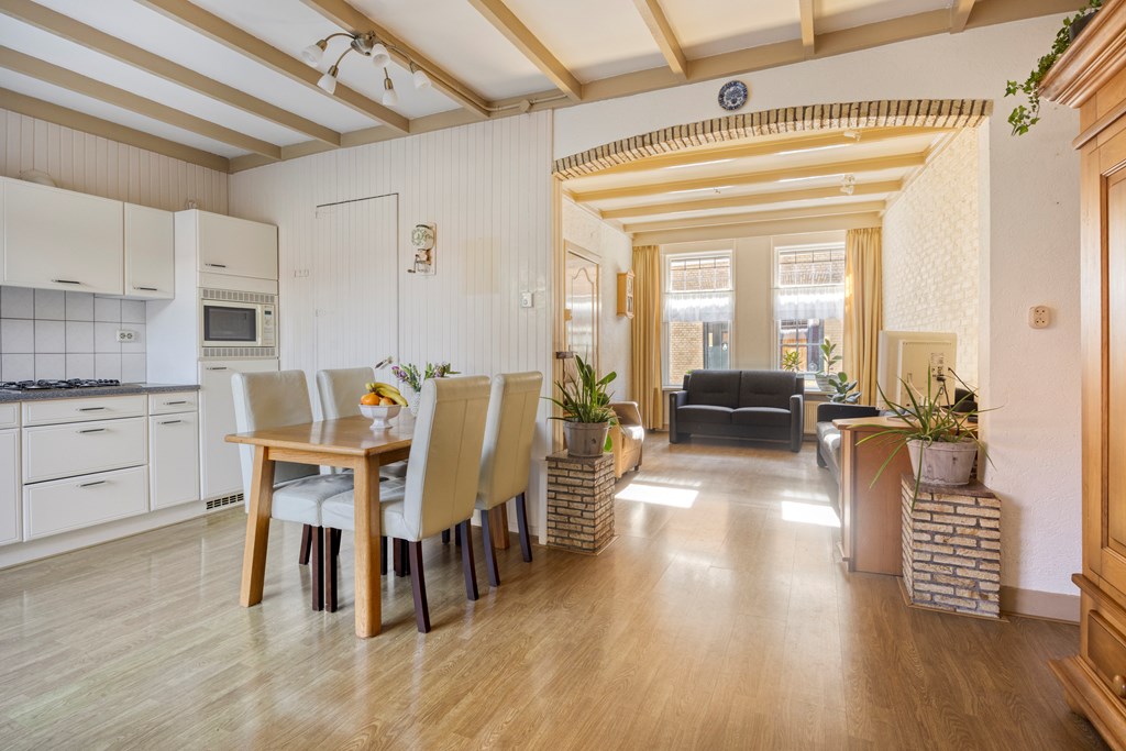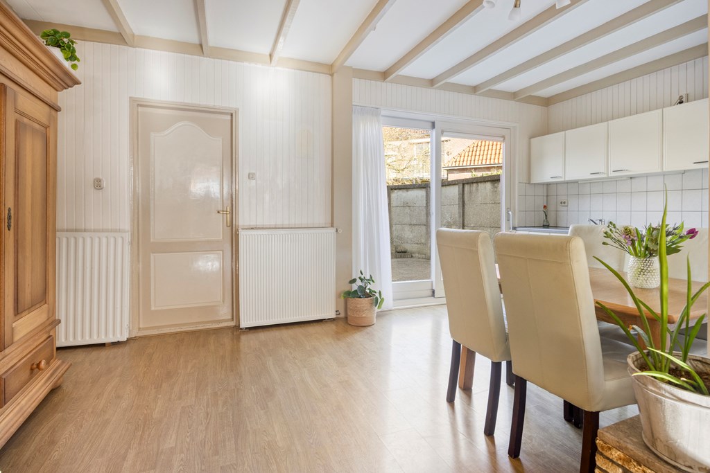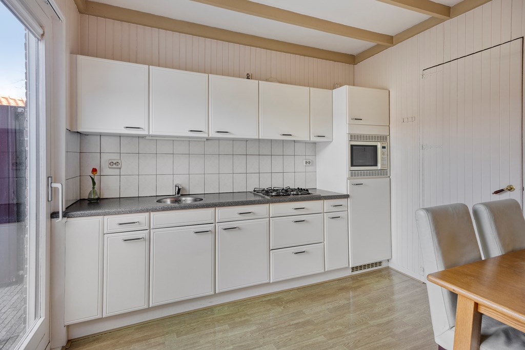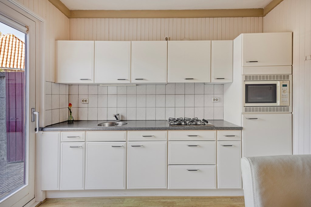 - De woning beschikt over een woonkamer met schuifpui en keukenblok;