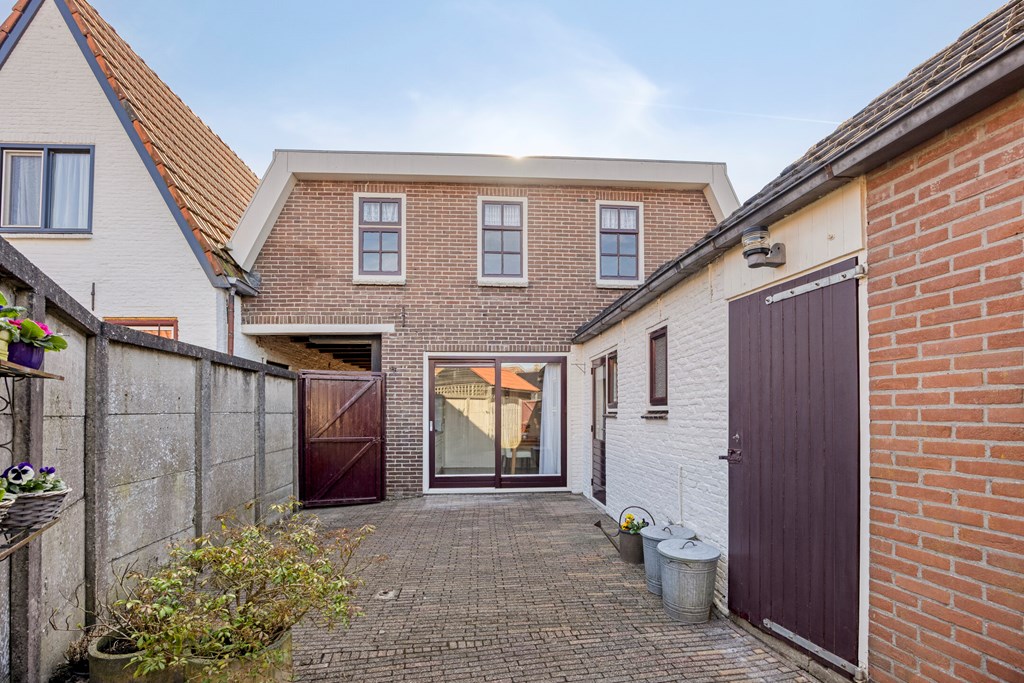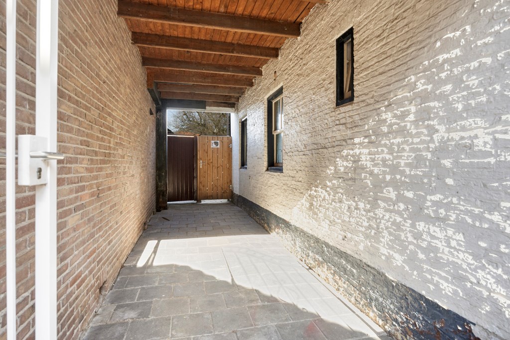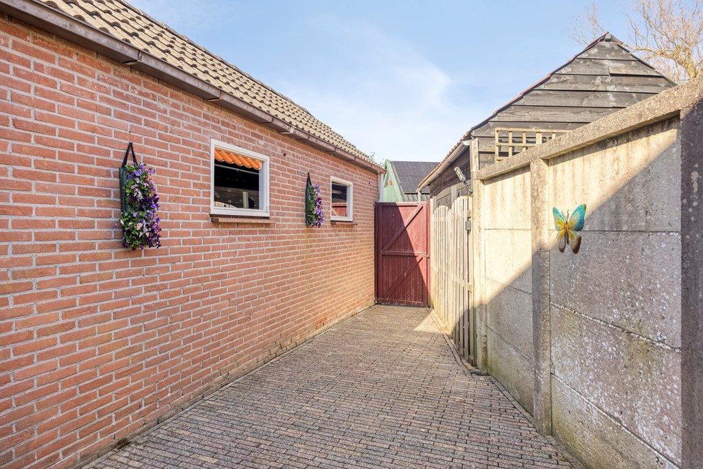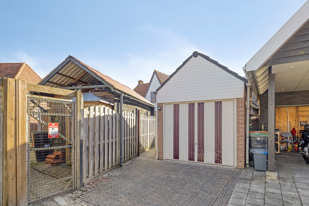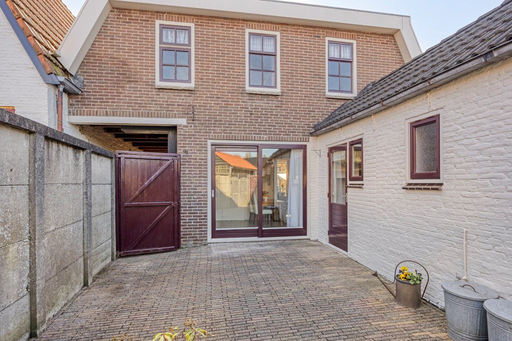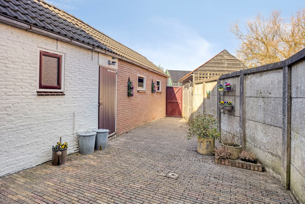 De onderhoudsvriendelijke achtertuin is gelegen op het noorden en voorzien van een achterom en een garage. Tevens is er een overdekte doorgang naast de woning van de achtertuin naar de Kruisstraat.
