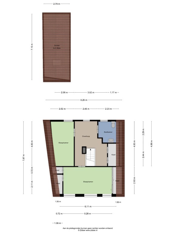 - De woning beschikt op de verdieping over 2 slaapkamers en een badkamer;