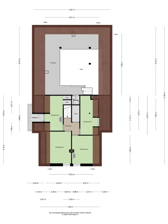 Overloop met 4 slaapkamers, waarvan 1 slaapkamer is voorzien van een balkon.