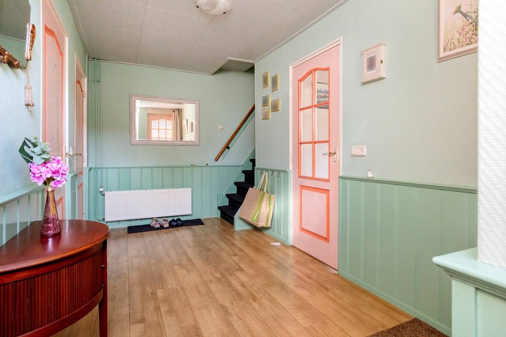 Entree / hal met trapopgang, toilet en een badkamer voorzien van een ligbad, douchehoek en een wastafel in meubel. Aan de voorzijde zijn 2 woonkamers met veel lichtinval en een mooi uitzicht over het vaarwater. De keuken is voorzien van een keukenblok met diverse inbouwapparatuur o.a. gaskookplaat, afzuigkap en een koelkast. Via een tussenhal bereikt u 2 slaapkamers. De voormalige deel, bereikbaar via de hal, beschikt o.a. over een wasruimte een toilet, 3 bergingen en een trapopgang naar zolderruimte.