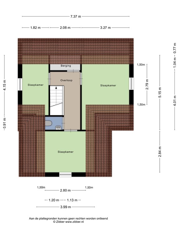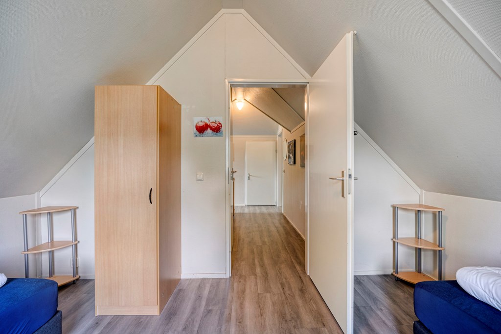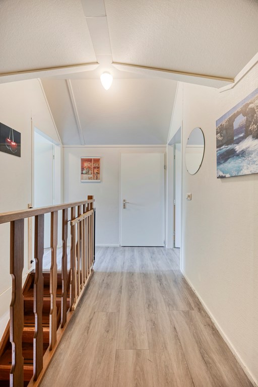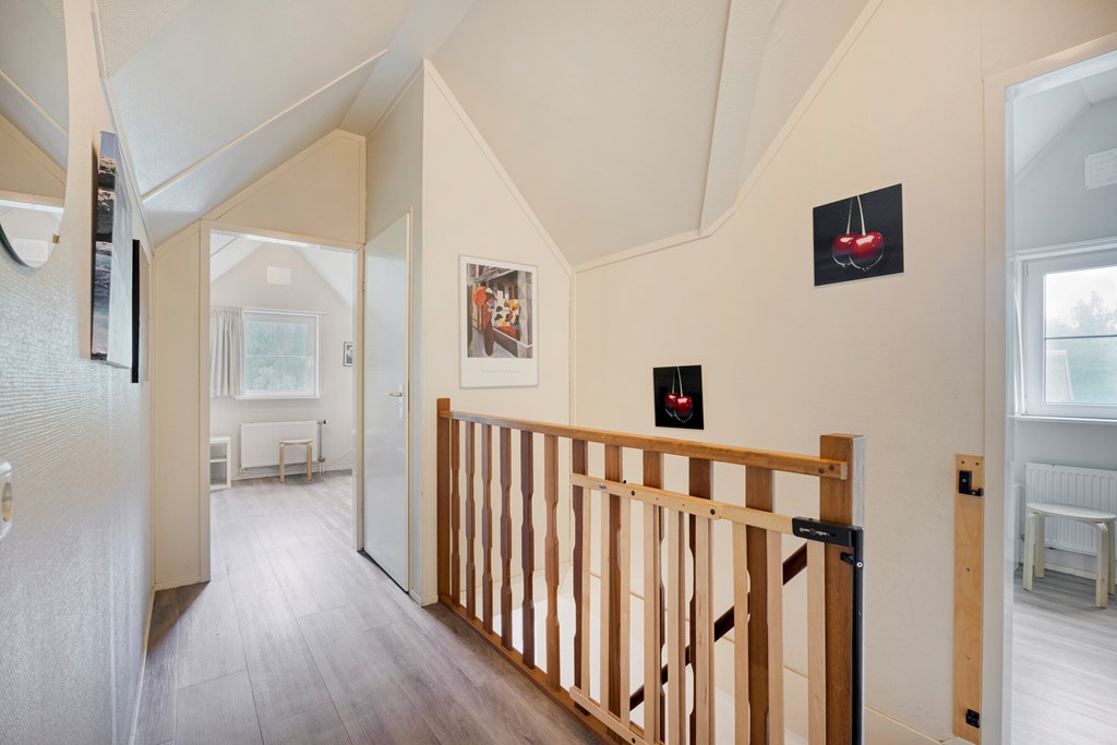 Overloop met 3 ruime slaapkamers, een toilet en bergruimte.