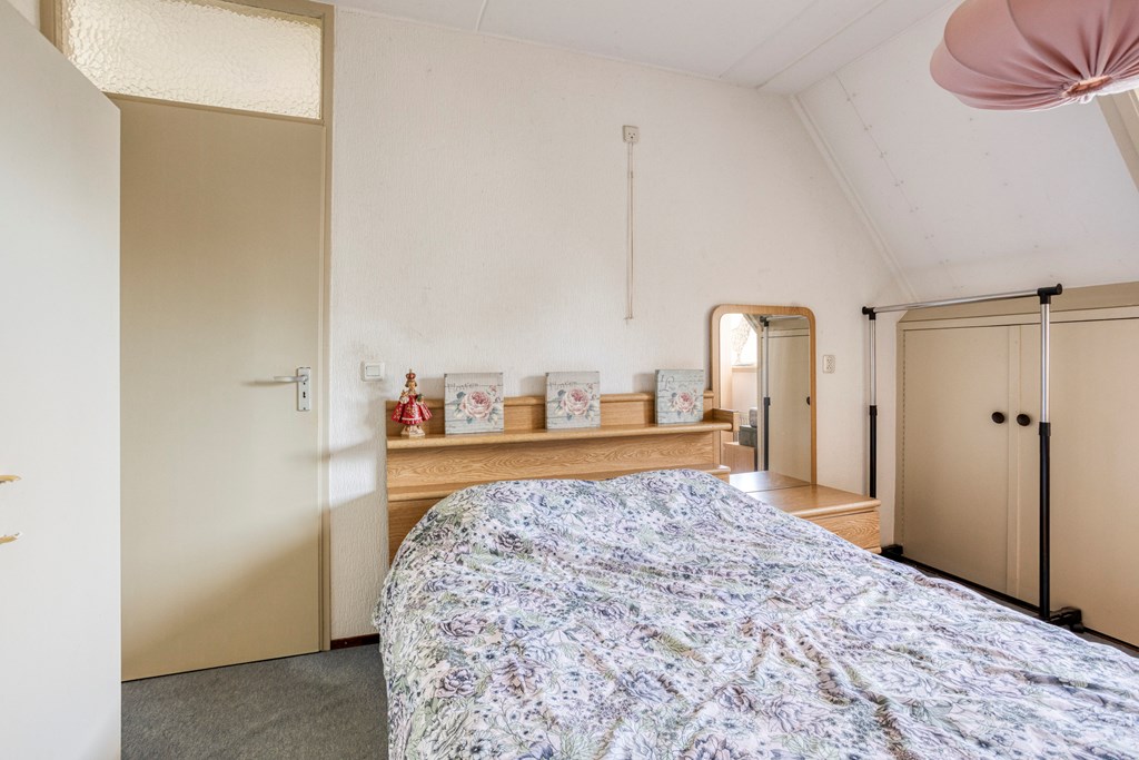 De achtertuin is gelegen op het zuidoosten en voorzien van een overdekt terras, een houten berging en een achterom. De aangebouwde garage naast de woning beschikt over een kanteldeur aan de voorzijde en 2 toegangsdeuren naar de achtertuin. Voor de garage is er een oprit met parkeergelegenheid.