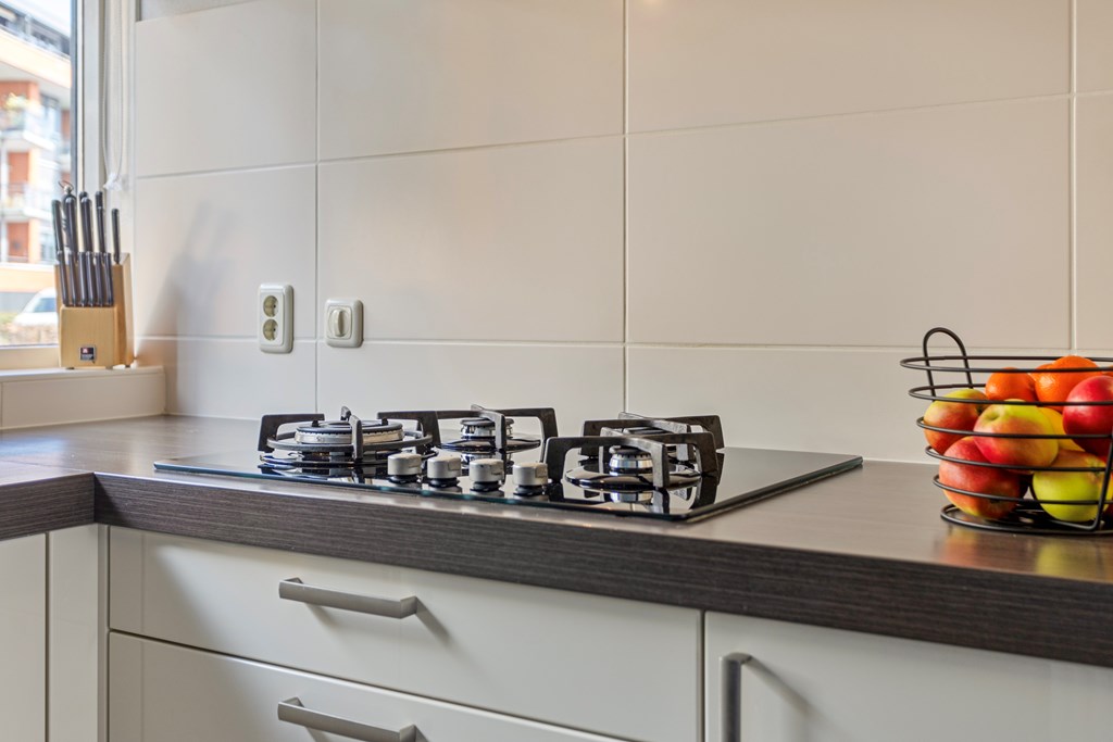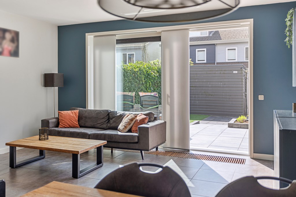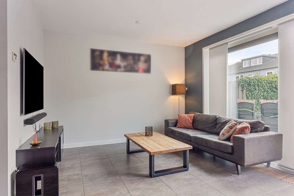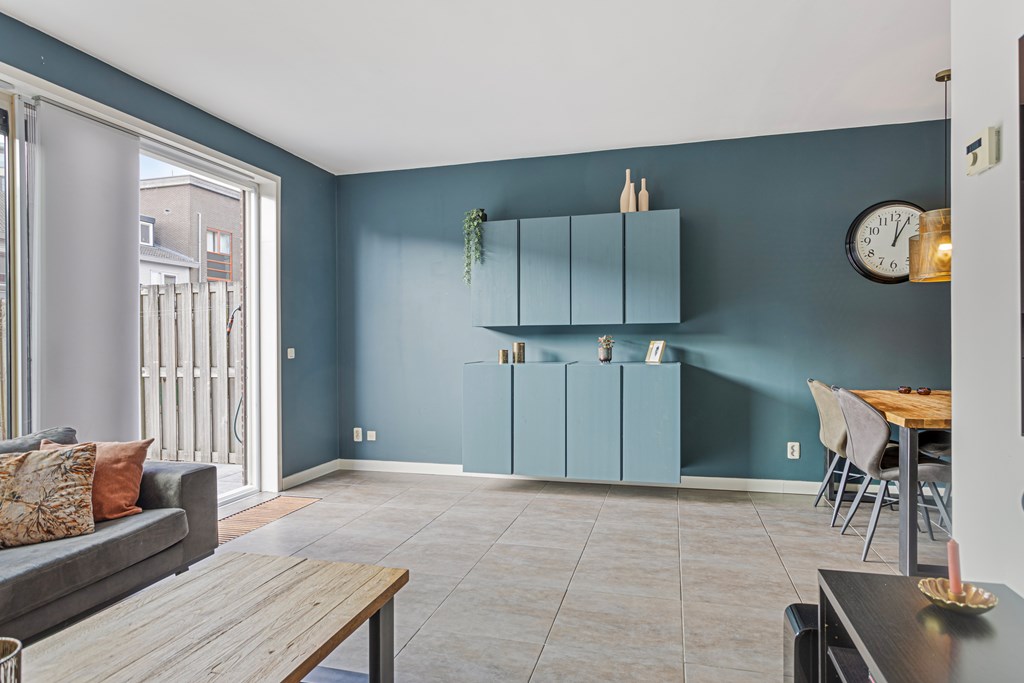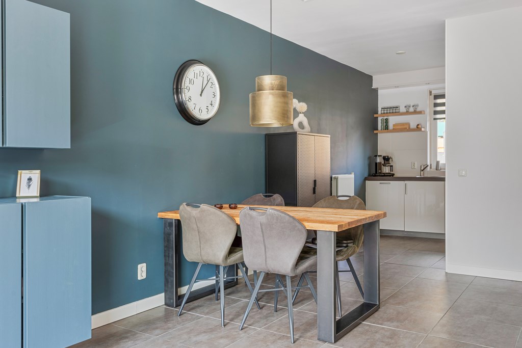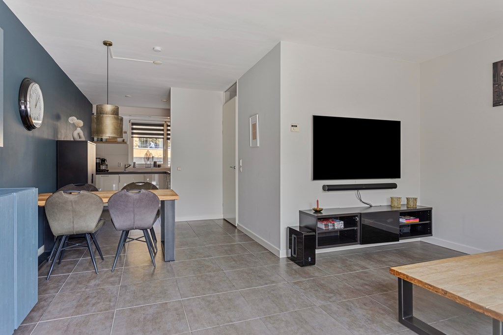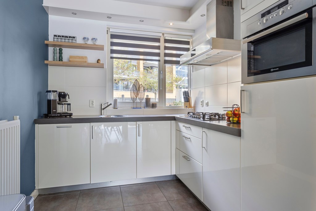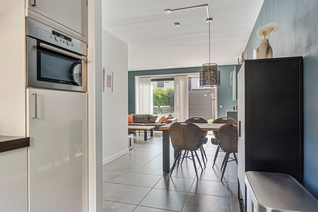 - de woning beschikt over ruime woonkamer met moderne keuken;