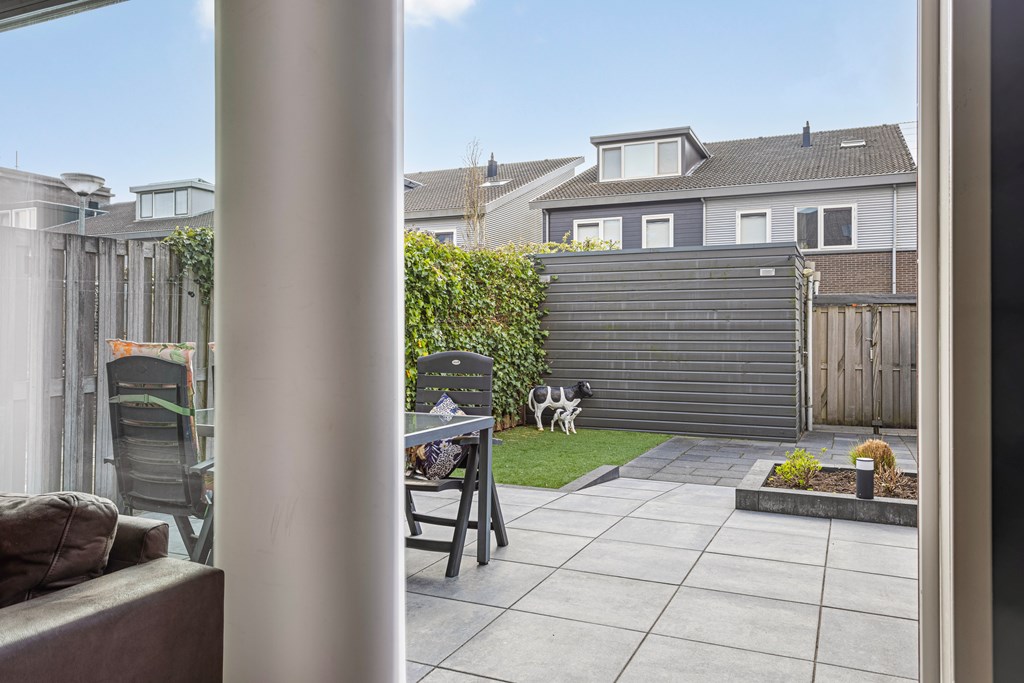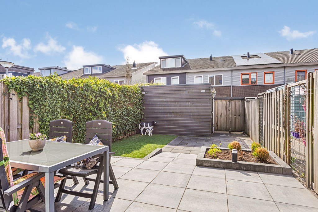 De achtertuin is gelegen op het zuiden en voorzien van een terras, een berging en een achterom.