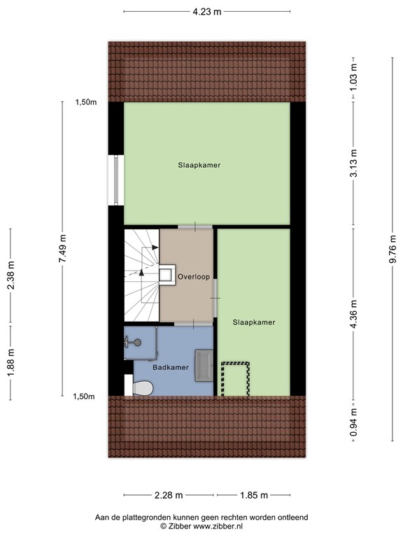 - De woning beschikt over 2 slaapkamers en een zolder;