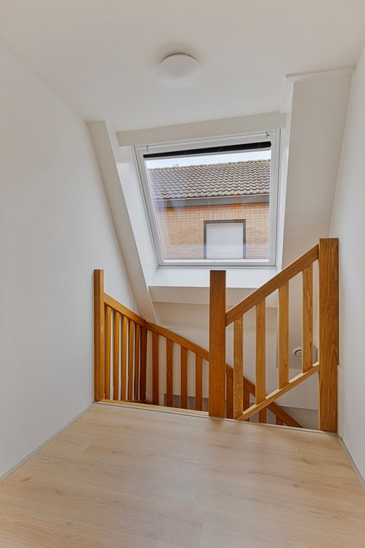 Ruime overloop met toilet en 2 slaapkamers, de slaapkamer aan de voorzijde is te splitsen in 2 slaapkamers.