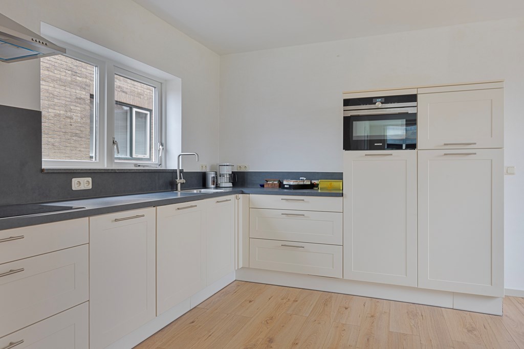 Entree/hal met ruime meterkast. De woonkamer is gelegen aan de voorzijde en voorzien van veel lichtinval en de keukenopstelling met diverse inbouwapparatuur, o.a. een inductiekookplaat, afzuigkap, vaatwasmachine, combimagnetron, koelkast en een vrieskast. De bijkeuken beschikt over een tuindeur, trapopgang, toilet en de badkamer voorzien van een douchehoek, ligbad en een dubbele wastafel in meubel.
