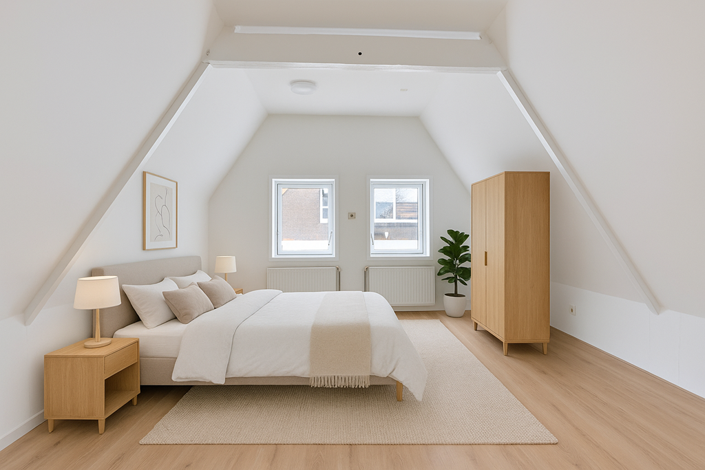 - De woning beschikt over 2 ruime slaapkamers met mogelijkheid tot splitsen;