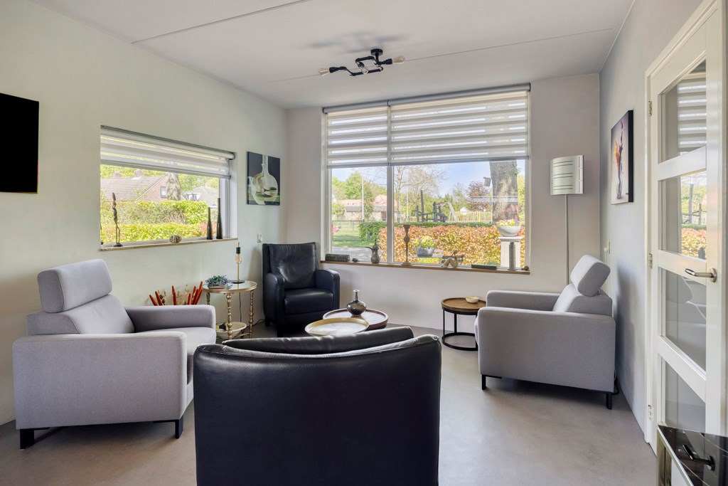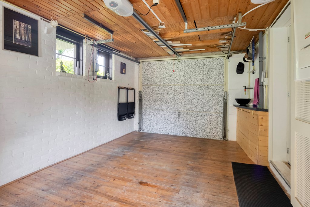 - de woning beschikt over een aangebouwde stenen garage, een vrijstaande houten garage en een carport;