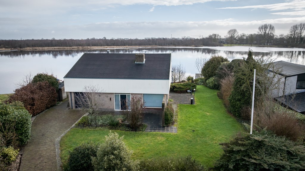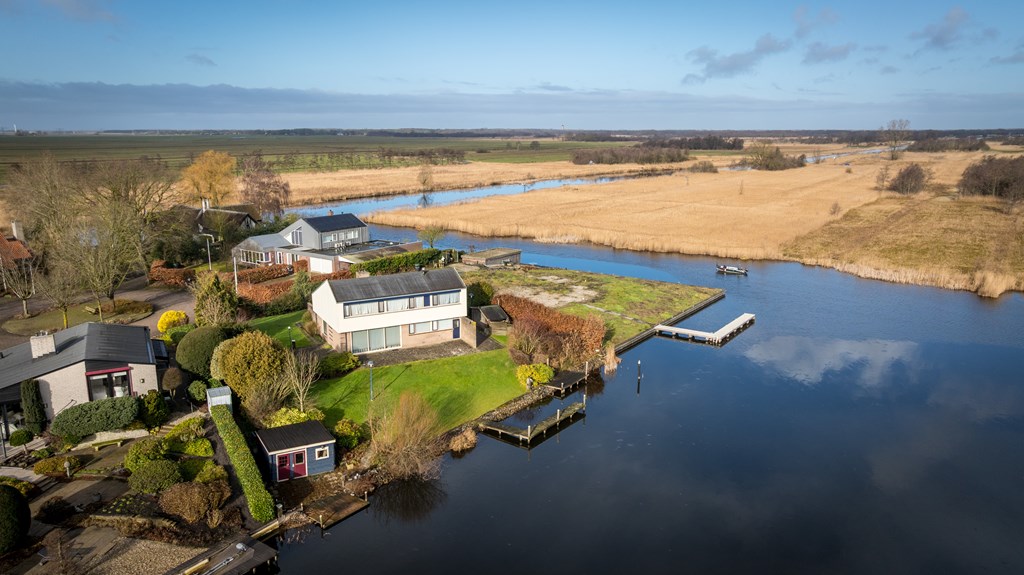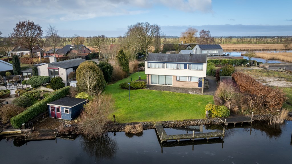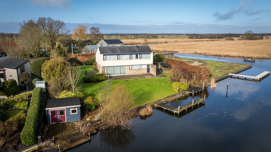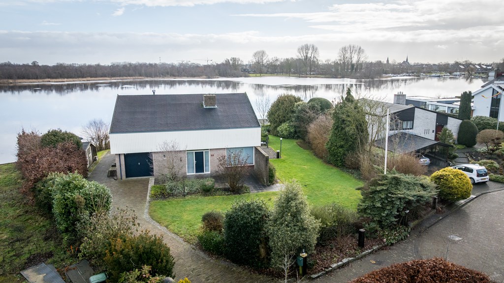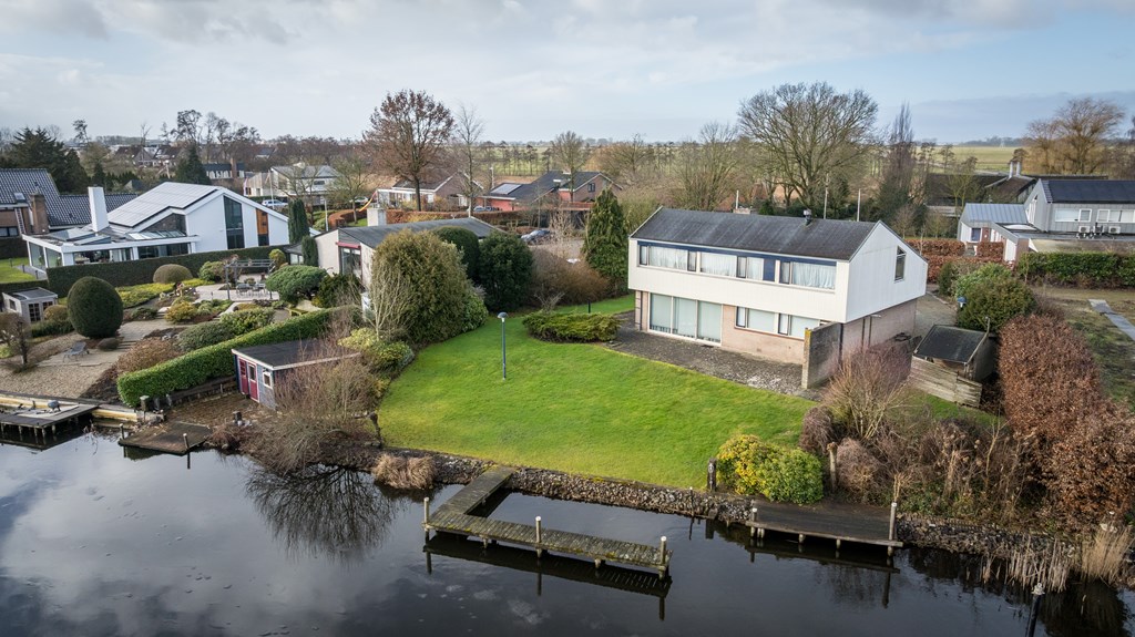 Op een unieke locatie aan vaarwater gelegen ruime vrijstaande woning. De woning beschikt o.a. over een woonkamer, keuken, bijkeuken, badkamer, 4 slaapkamers en een inpandige garage. De tuin rondom de woning grenst gedeeltelijk aan vaarwater en is voorzien van diverse terrassen, een aanlegsteiger, 2 bergingen en parkeergelegenheid. De woning staat op een perceel van 1.160m² en heeft een woonoppervlakte van ca.168m².