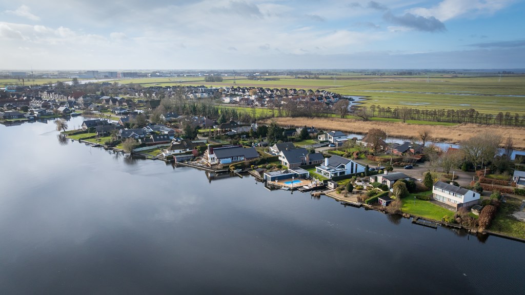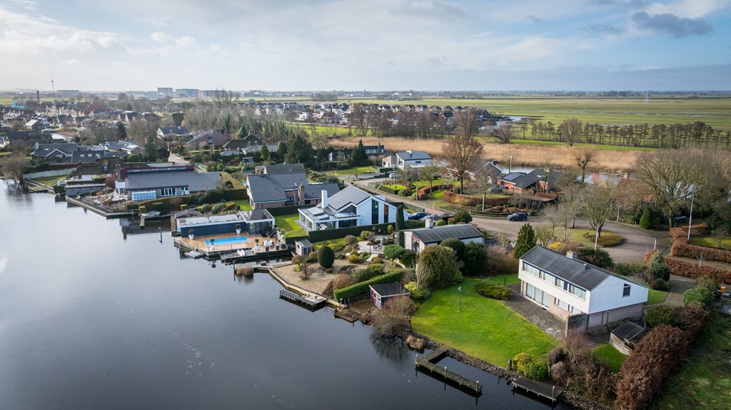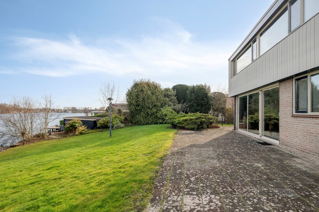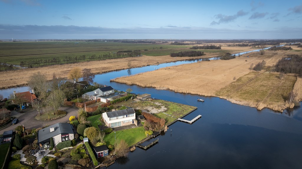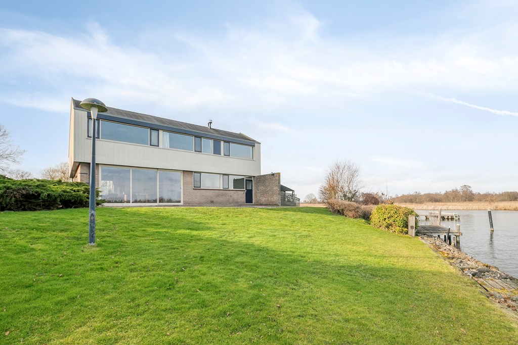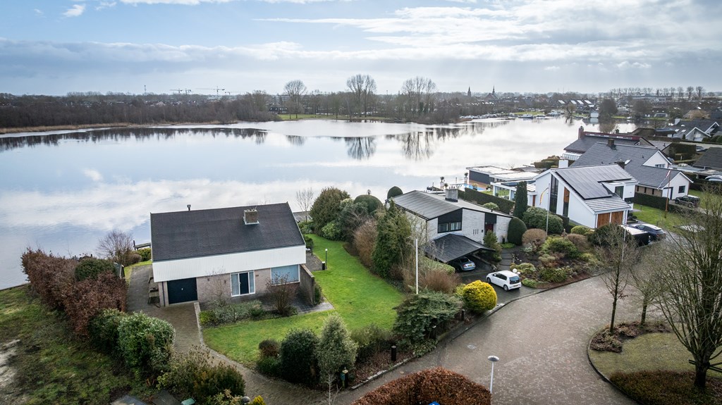 Op een unieke locatie aan vaarwater gelegen ruime vrijstaande woning. De woning beschikt o.a. over een woonkamer, keuken, bijkeuken, badkamer, 4 slaapkamers en een inpandige garage. De tuin rondom de woning grenst gedeeltelijk aan vaarwater en is voorzien van diverse terrassen, een aanlegsteiger, 2 bergingen en parkeergelegenheid. De woning staat op een perceel van 1.160m² en heeft een woonoppervlakte van ca.168m².