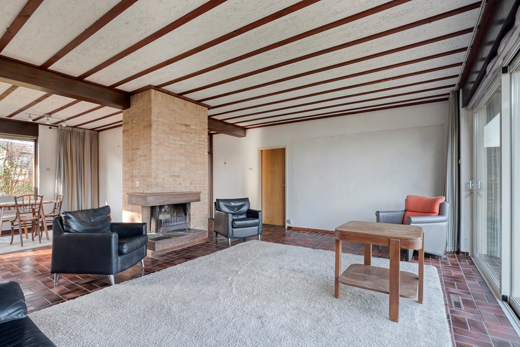 - De woning beschikt over een lichte woonkamer met schuifpui en een open haard;